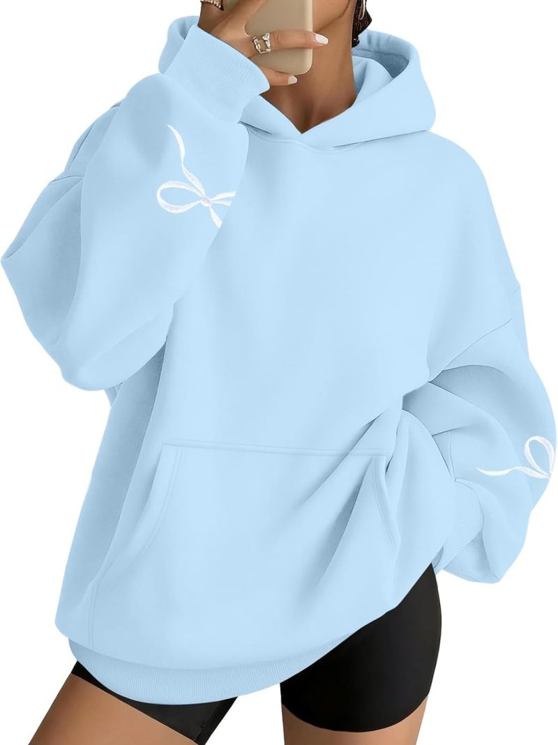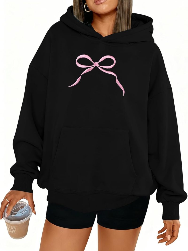 - Features: Bow print, long sleeve, drop shoulder, hooded, oversized womens hoodies, fashionable