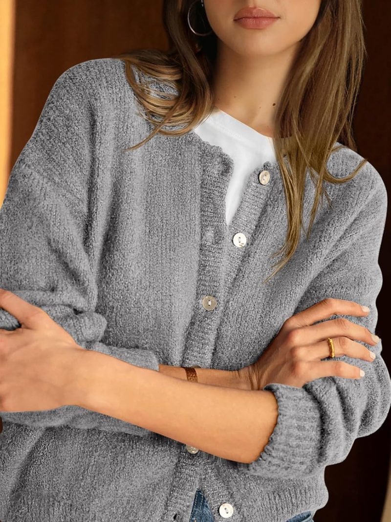 Long Sleeve Crewneck Button Down Womens Sweaters Fall Open Front Chunky Cardigan Sweaters for Women