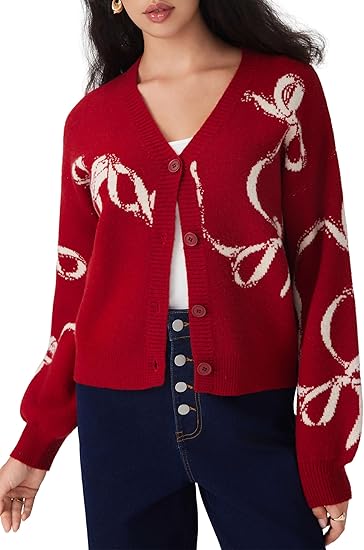 Cardigan Sweaters for Women Trendy Bow Cardigan Long Sleeve Open Front Button Down Sweater Fall Fashion