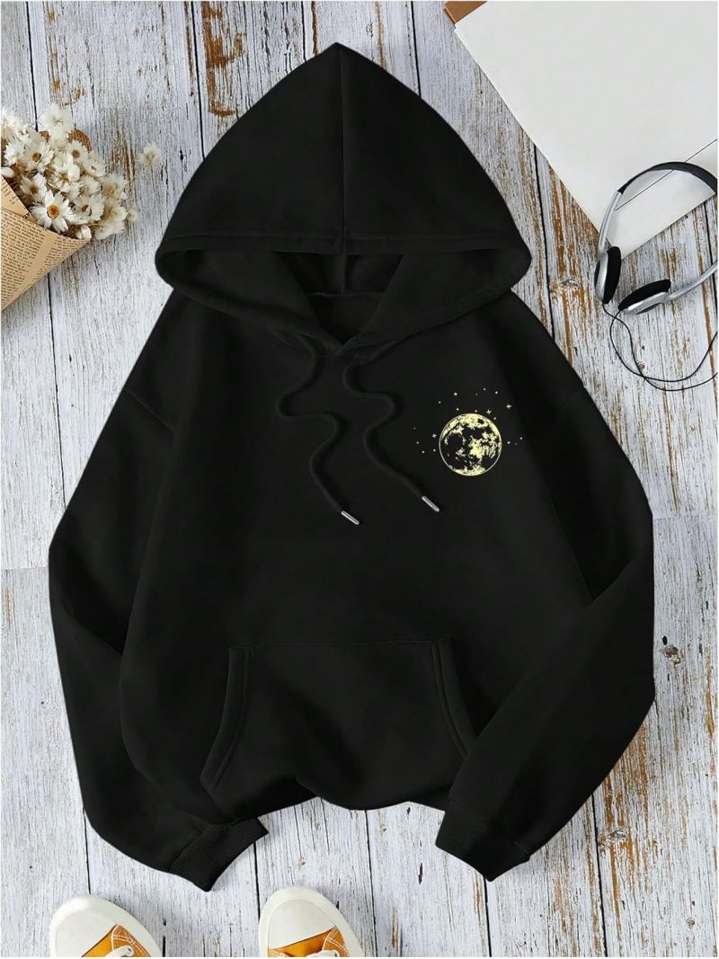 - Features: Moon print, drawstring, kangaroo pocket, hooded, long sleeve, drop shoulder, womens hoodies, fashionable