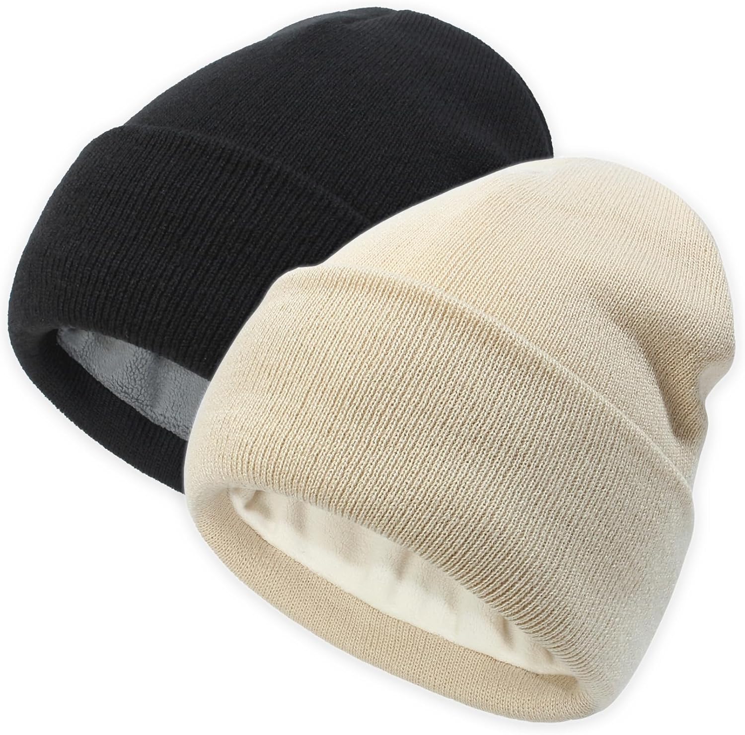 2pcs Unisex Winter Fleece Lining Hat for Men Women Knitted Cuffed Hat Warm Ski Beanie Cap