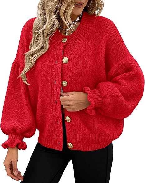 TRENDY STYLE:Chunky Sweater Women Not Only Provides Warmth But Also Adds A Touch of Texture To Womens Casual Outfits.Ruffle Sleeve Design of Womens Oversized Cardigans Bring A Playful and Feminine Flair,Elevating The Overall Look To Extraordinary