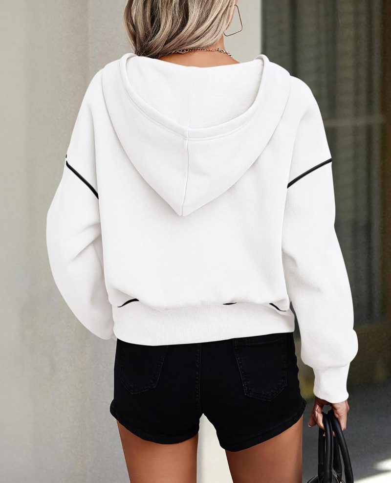 MORE DETAILS: The Loose Fit Style Provides Freedom of Movement, Offering A Relaxed Silhouette for A Casual Yet Chic Look. Women Hoodies Features Contrasting Lines Adds Visual Interest, Elevating The Overall Look with A Touch of Sophistication